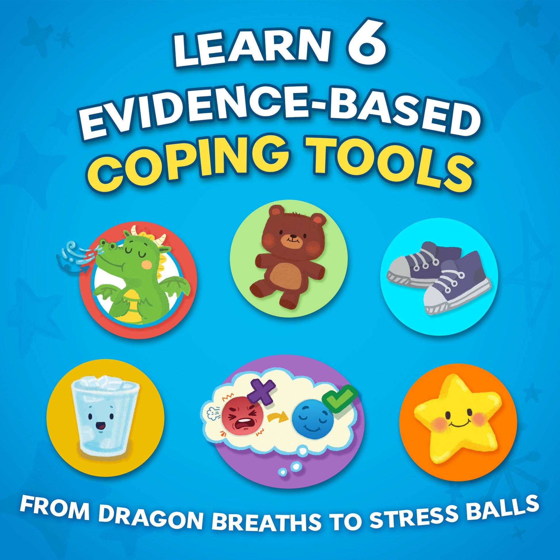 - 6 PRACTICAL COPING SKILLS – Dragon breaths, stress balls, cold water, and calming thoughts kids use right away.