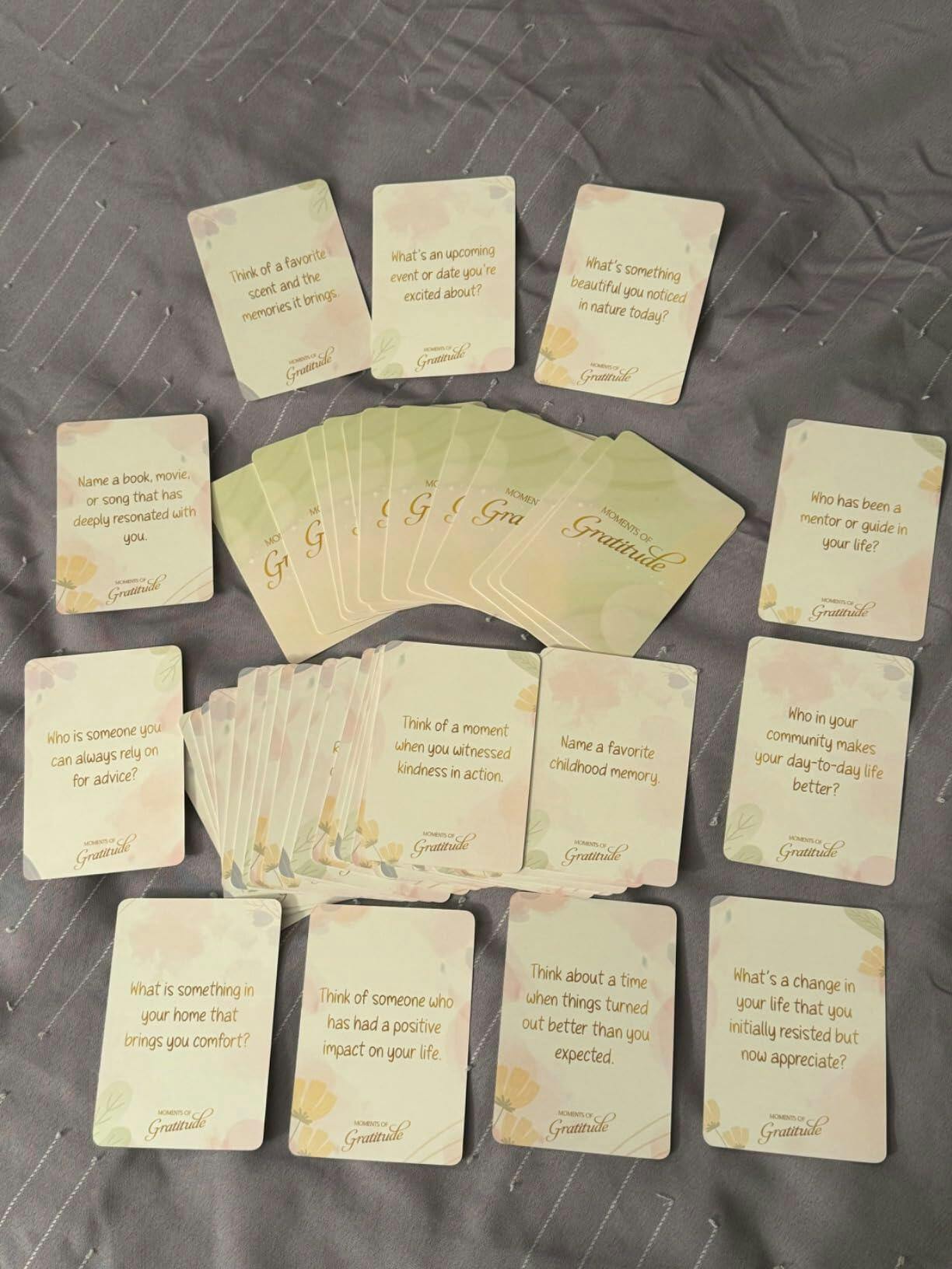 - Positive Gifts for All: Whether you're looking for encouraging gifts for women or men, mindfulness cards, or meditation gifts, Moments of Gratitude is a great choice. We can all benefit from some more good feelings.